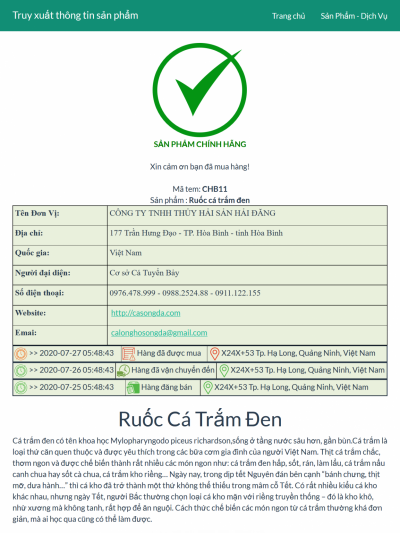 Ngày sau khi quét mã, các thông tin về xuất xứ, nguồn gốc của sản phẩm sẽ được hiển thị, giúp người dùng dễ dàng và nhanh chóng căn cứ vào đó để mua được sản phẩm đúng thương hiệu.